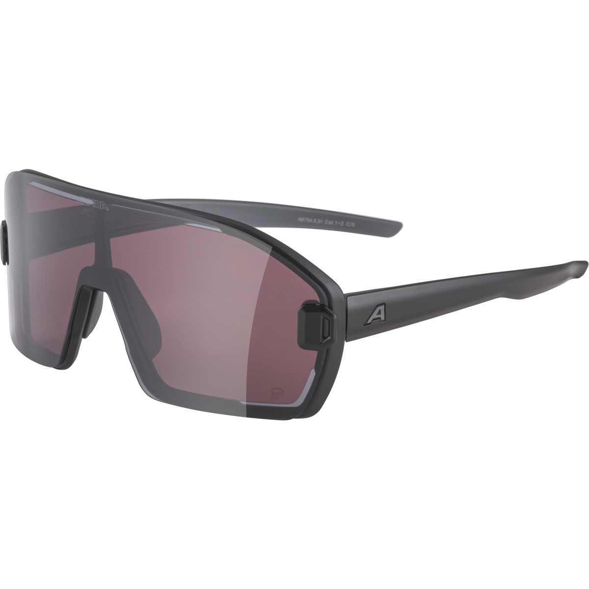 • monture: noir mat / verre: Q pink + black (miroité), catégorie de filtre: 1 + 3, translucidité: env. 10% (combiné)